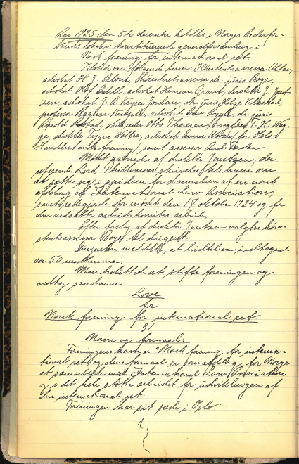 Protokollen fra NFIRs konstituerende generalforsamling, 5. desember 1925.